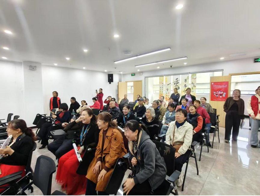 活动正式开始时,会场已座无虚席,老人们一边品尝美食,一边与志愿者唠家常,笑声此起彼伏。“这香蕉甜到心里去了!”奶奶捧着蛋糕说道。一场“小服务”撬动“大幸福”,为接下来的游戏互动和文艺汇演铺就了温情底色。