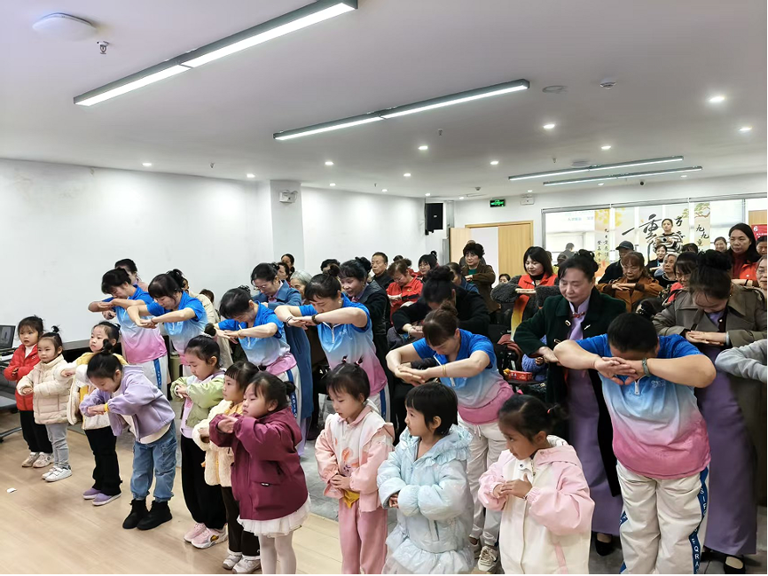 文艺汇演节目精彩纷呈、亮点十足。社区广场舞队的阿姨们身着靓丽服饰,伴随着欢快的旋律翩翩起舞,展现出蓬勃向上的精神风貌;来自辖区幼儿园的小朋友们带来了童真童趣的表演,稚嫩的歌声、可爱的舞姿萌化了在场所有人,传递着最纯粹的敬老之情。开心乐队演奏的经典曲目《牧羊曲》为老年朋友们送上温暖祝福。当《中华孝中华孝道》的旋律响起,老人、孩子和志愿者们伸出双手,掌心相对,以指尖传递温情。这温暖的一幕瞬间点燃全场,将汇演气氛推至顶点,也让“孝”的文化内涵在人们真挚动人的笑容中得到完美诠释。